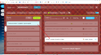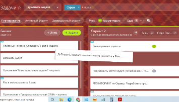 - Визуально наглядно. Левая часть экрана - Бэклог. Это список ВСЕХ задач по направлению. Правая - текущий Спринт на неделю, в который мы отобрали актуальные задачи.